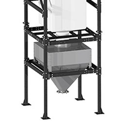 Die Behälter der beiden BigBag-Entleerstationen unterscheiden sich am Auslauf des Trichters. Ein Trichter ist für eine seitliche Absaugung vorgesehen und hat einen eckigen Auslauf. Der andere Trichter ist am Auslauf rund und für den Anschluss einer Zellenradschleuse geeignet. Die Austragsleistung der Zellenradschleuse kann ca. 3−6 to/h betragen.