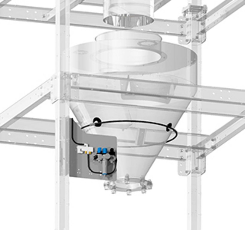 Diese BigBag-Entleerstation wurde für das Lagern und Austragen von pulverförmigen Schüttgütern konstruiert. Der BigBag wird mit einem Elektro-Kettenzug komfortabel eingehängt. Die Andockvorrichtung sorgt für eine staubfreie Verbindung zwischen BigBag-Auslauf und Behälter. Bei schlecht fließenden Schüttgütern setzen wir zur Austragsunterstützung Walkeinrichtungen, Vibrationssysteme oder Fluidisierungen ein.