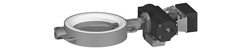 Drehklappen mit pneumatischer Betätigung liefern wir mit Endlagenüberwachungen für die Stellungen „auf / zu“ oder als Dosier-Drehklappe mit Endlagenüberwachungen für die Stellungen „grob / fein / zu“.