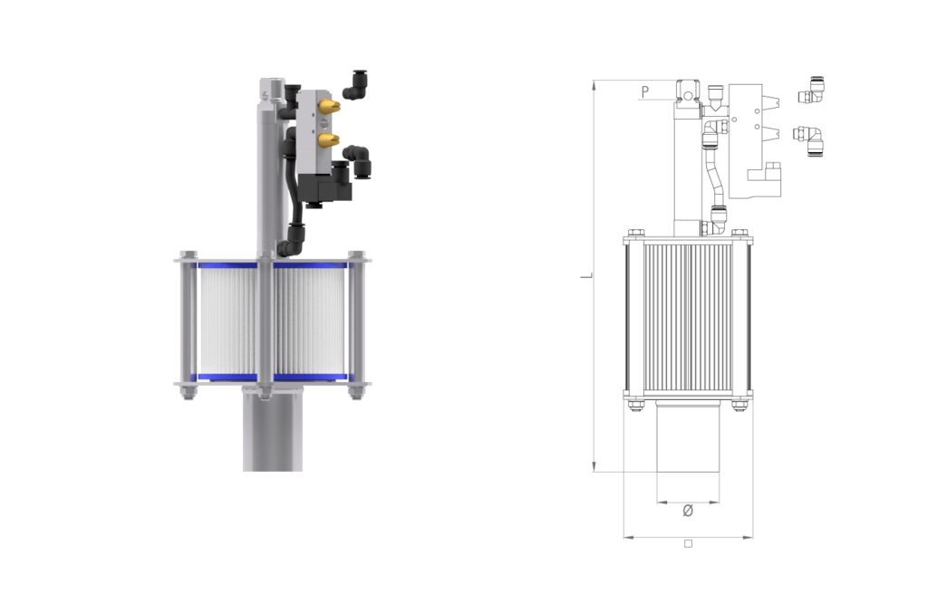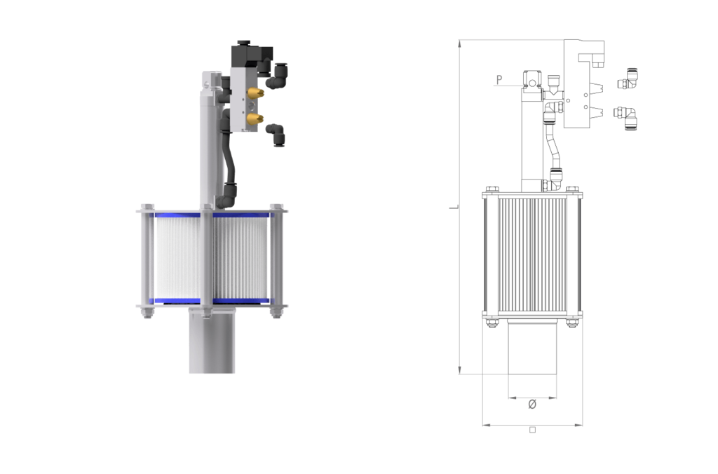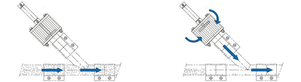Das Leersaugventil LSV wird in Saugförderanlagen eingesetzt. Im geöffneten Zustand strömt Umgebungsluft gefiltert in die Materialleitung, der Materialstrom wird unterbrochen und die nachfolgende Materialleitung wird leergesaugt. Es können mehrere Leersaugventile mit einem Magnetventil angesteuert werden.