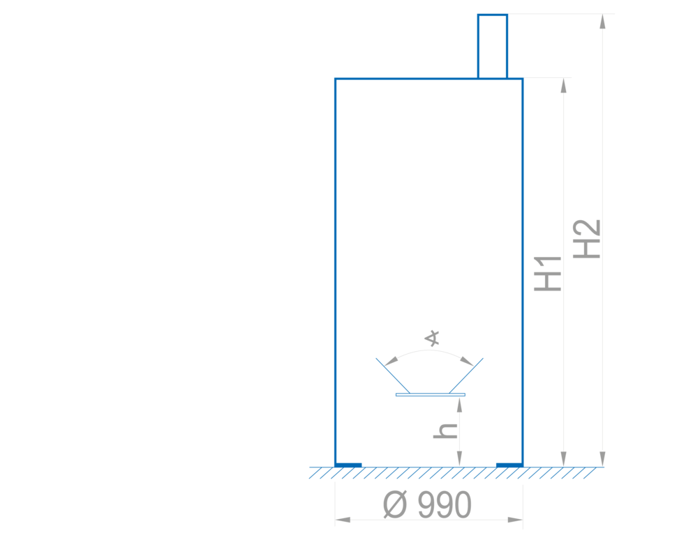 Der Auslauftrichter hat einen Öffnungswinkel von 90° oder 60°. Bei der Lagerung von Kunststoffmahlgut empfehlen wir 60°.