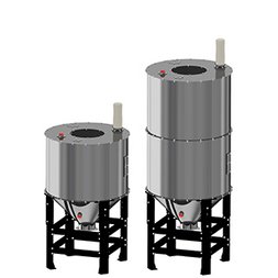 Die Container der Baureihe CR.C1 werden in der Kunststofffertigung als Tagesbehälter (Materialspeicher, Pufferbehälter) eingesetzt. Die Befüllung erfolgt mittels Saugfördergerät oder Zyklonabscheider (für Mahlgut aus der Mühle). Wir bieten Adapterplatten für den Anschluss von Saugfördergeräten führender Hersteller von zentralen Materialfördersystemen an.
