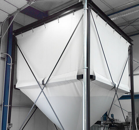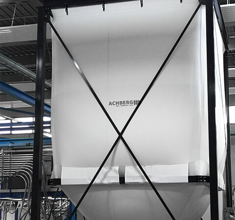 Unsere flexiblen Innensilos SFLEX bestehen aus einem sehr stabilen Stahlbau und Gewebesäcken, die bestens für die Lagerung von Granulat, Mahlgut und Grieß geeignet sind, da sie hochreißfeste, atmungsaktive, elektrostatisch ableitfähige und lebensmittelechte Eigenschaften besitzen. Wir gehen auf Ihre spezifischen Schüttguteigenschaften ein und wählen für Sie das passende Gewebe und die entsprechende Dimensionierung der Silos aus.