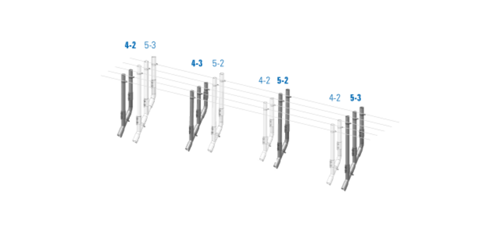 Der Verteilerabstand beträgt 150 mm bei der Verwendung von Camlock- oder Storzkupplungen. Bei der Verwendung unserer TWIST-Kupplungen (bis Ø 50 mm) kann der Verteilerabstand auf 100 mm reduziert werden. Dadurch wird der Platzbedarf für den Kupplungsbahnhof minimiert und der Bedienkomfort erhöht − um nur zwei Vorteile bei der Verwendung von TWIST-Kupplungen zu nennen.