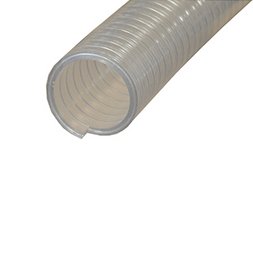 Dieser transparente Schlauch wird als flexible Material- oder Vakuumleitung eingesetzt. Er ist innen sehr glatt und gewährleistet einen materialschonenden Durchfluss des Schüttguts. In der PUR-Variante eignet er sich sehr gut für die Förderung von abrasiven Schüttgütern (Kunststoffe und Lebensmittel). Die eingegossene verzinkte Stahlspirale sorgt für hohe Vakuumfestigkeit und die Durchleitung der elektrostatischen Energie.