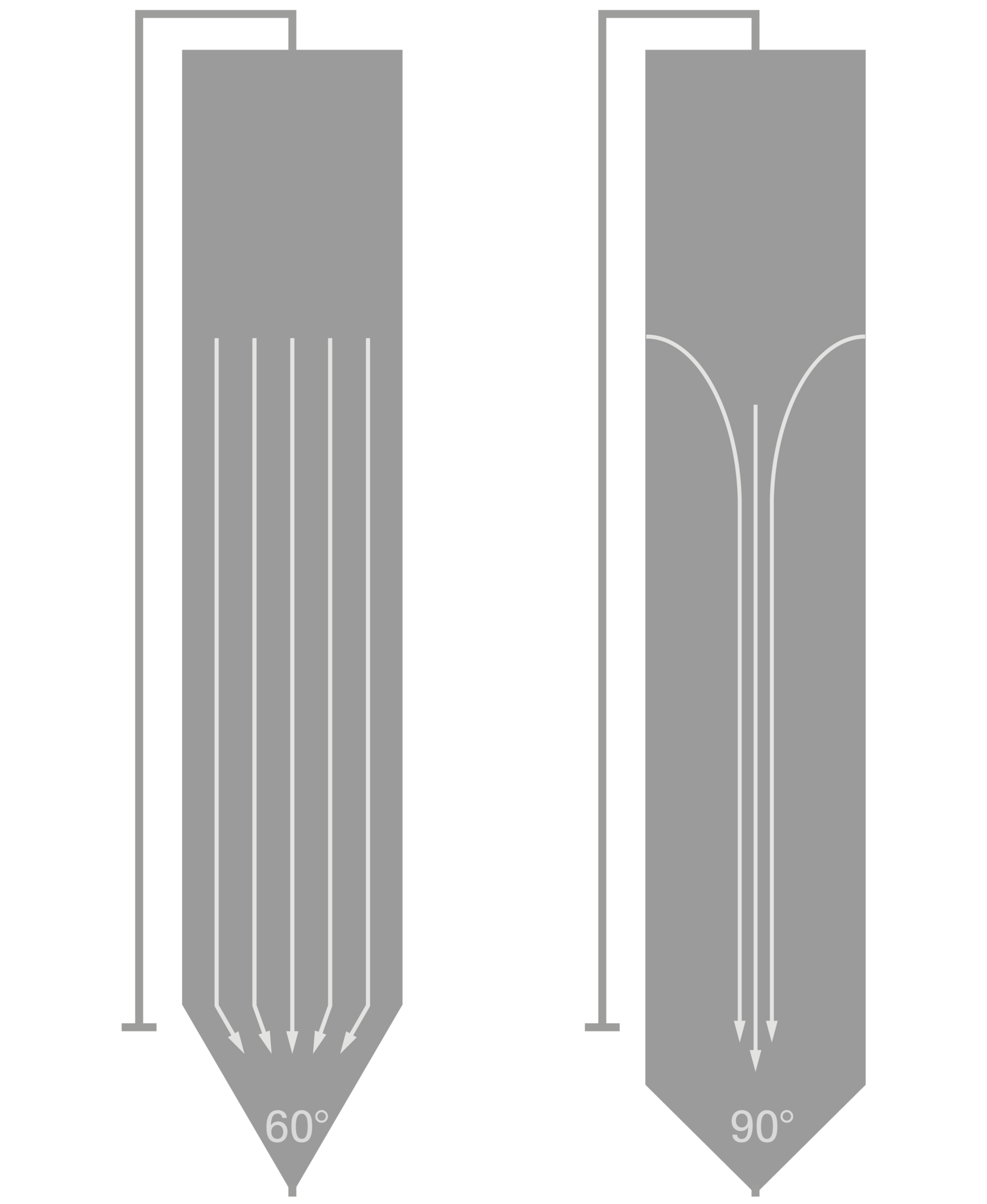 Trichteröffnungswinkel von 90° werden häufig bei Doppelkammersilos zur Chargentrennung gewählt. Da nur eine Charge pro Silokammer gelagert und komplett entleert wird, gibt es keinen Nachteil im Hinblick auf eine Chargenvermischung. Der Vorteil des größeren Lagervolumens macht sich dann noch stärker bemerkbar, da im Doppelkammersilo zwei Trichter eingeschweißt sind.