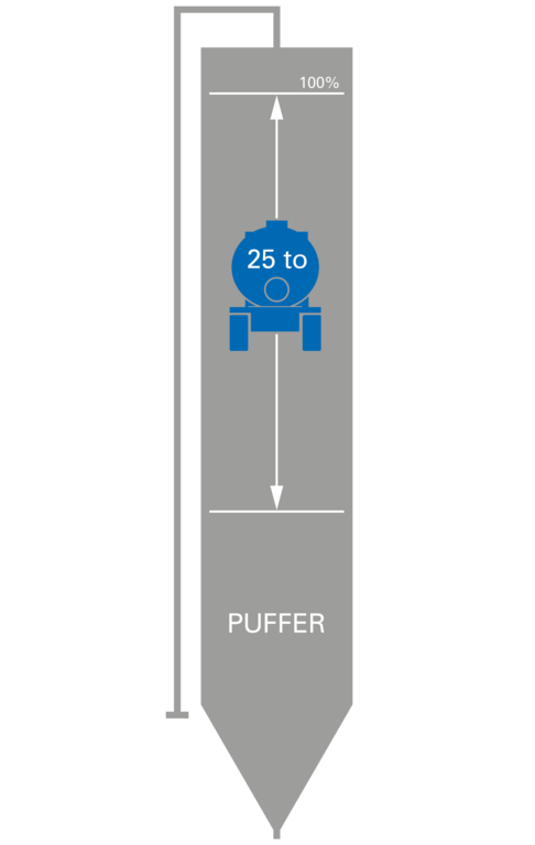 Der Puffer muss so dimensioniert werden, dass das Silo niemals leer läuft. Der Puffer berechnet sich aus dem Tagesverbrauch (to) und der Beschaffungszeit (Tage).